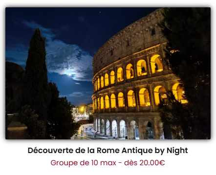 Une autre version de la Roma Antique avec Stéphane qui vous emmenera lors une balade de 2h30 de nuit dans les plus beaux spots pour admirer les forums et le Colisée de nuit. Cette expérience nous permettra également de vous donner un maximum d’informations pour la visite du Colisée (à faire avant la visite Colisée).